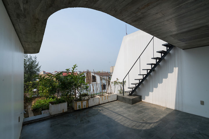 Càng lên cao các sàn nhà càng lùi lại để tạo điểm nhìn cho con ngõ hẹp trước mặt.